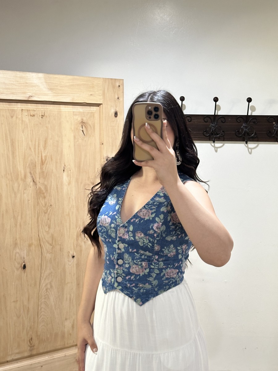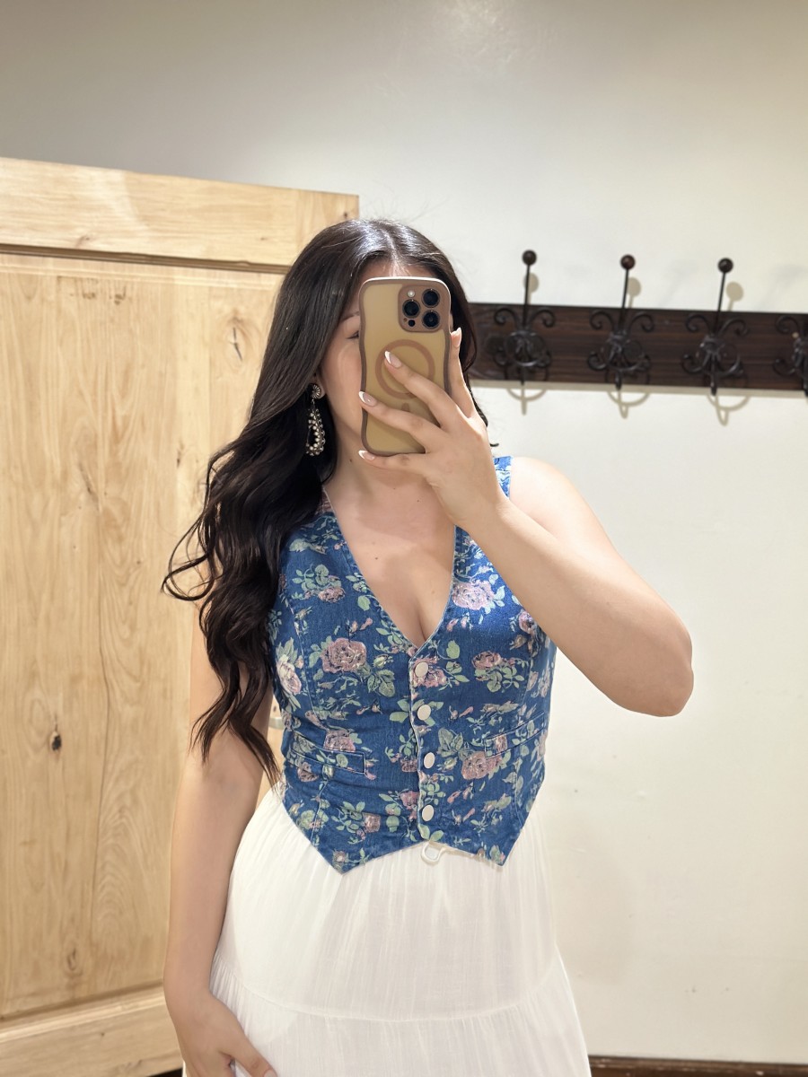 Self: 70% Cotton, 28% Polyester, 2% Spandex MODEL IS WEARING SIZE MEDIUM VEST IS STRETCHY
