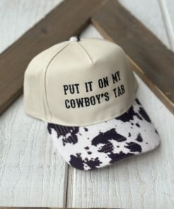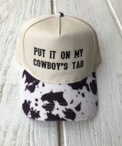 ” Put it on my cowboy’s tab ” Faux Cowhide Cap ( Brown )