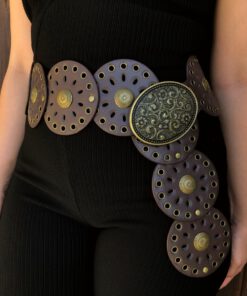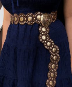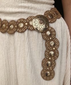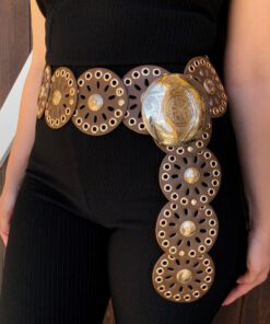 ” Evelyn ” Flora Mandala Cut Out Eyelet Disc Hip Belt ( Brown / Gold )