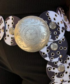 ” Meghan ” Faux Cow Print Disc Belt ( Black / White / Silver )