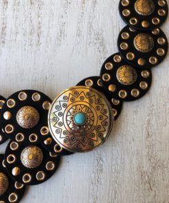 ” Ruthie ” Western Mini Disc Belt ( Black / Gold / Turquoise )