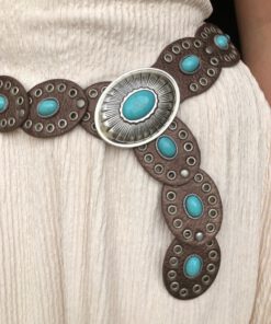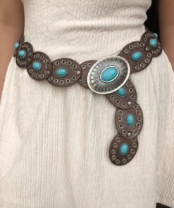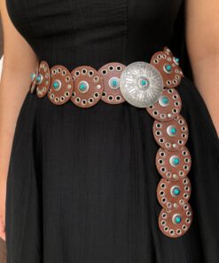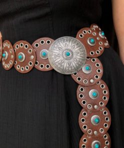” Riley ” Western Oval Concho Belt ( Turquoise / Brown )