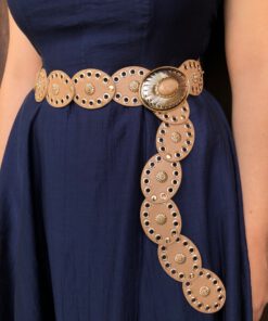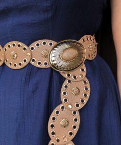 ” Virginia ” Western Oval Concho Belt ( Beige / Gold )