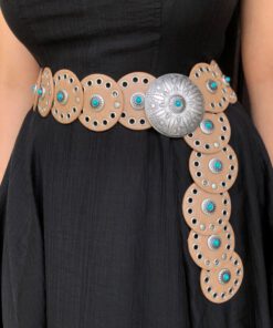 ” Riley ” Western Oval Concho Belt ( Turquoise / Natural )