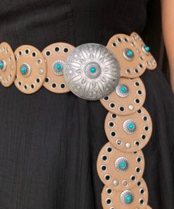 ” Ava ” Western Disc Belt ( Beige / Turquoise )