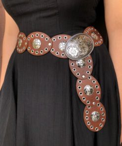 ” Josie ” Western Buckle Disc Belt ( Brown / Silver )