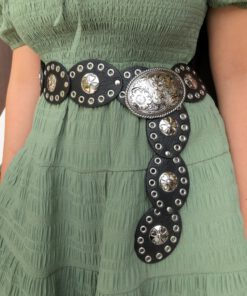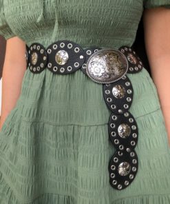 ” Josie ” Western Buckle Disc Belt ( Black / Silver )