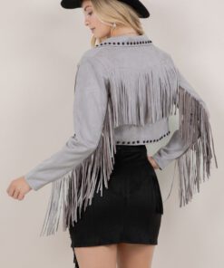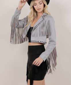 ” Gianna ” Fringe Studded Jacket ( Grey )