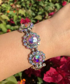” Adelaide ” Crystal Flower Stretch Bracelet ( Silver / Ab )