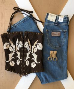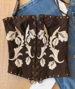 ” Yaneth ” Embroidered Lace Up Corset ( Brown )