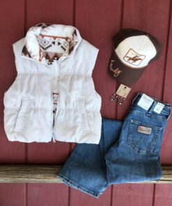 ” Howdy ” Reversible Corduroy Puffer Vest ( Cream )