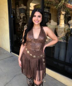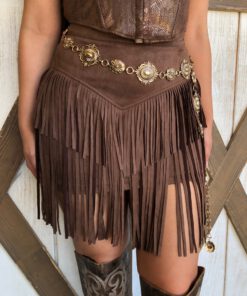 ” Abilene” Faux Suede Fringed Skirt ( Brown )