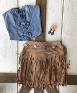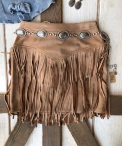 ” Abilene” Faux Suede Fringed Skirt ( Tan )