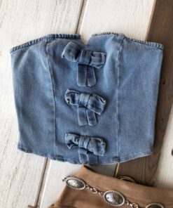 ” Jovie ” Bow Detail Denim Top ( Blue )