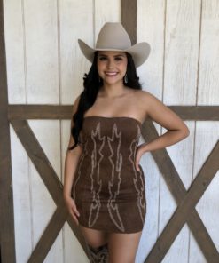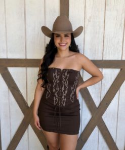 ” Howdy Cowgirl 2.0 ” Embroidery Suede Corset Mini Dress ( Brown )