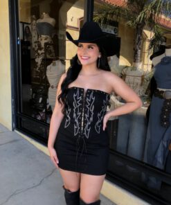 “Howdy Pretty Cowgirl ” Lace up mini denim dress ( Black )