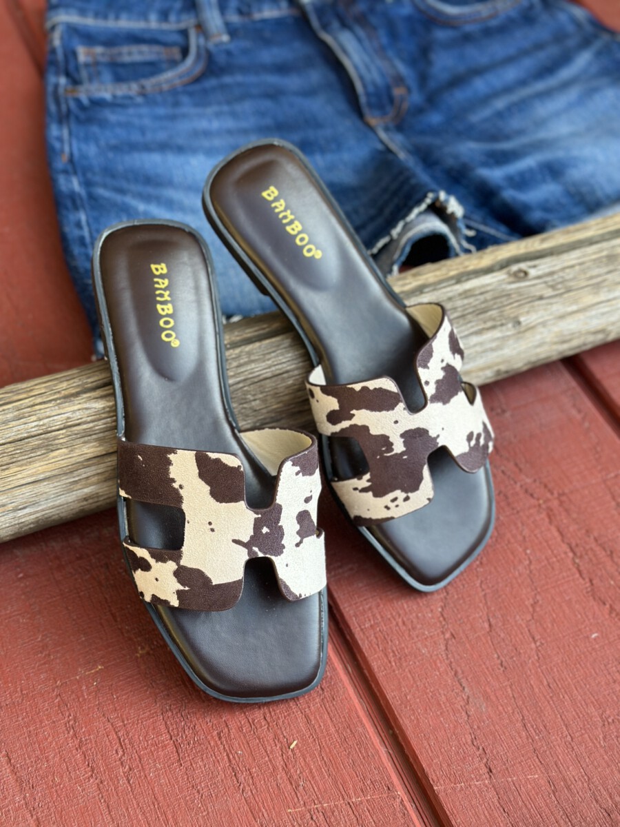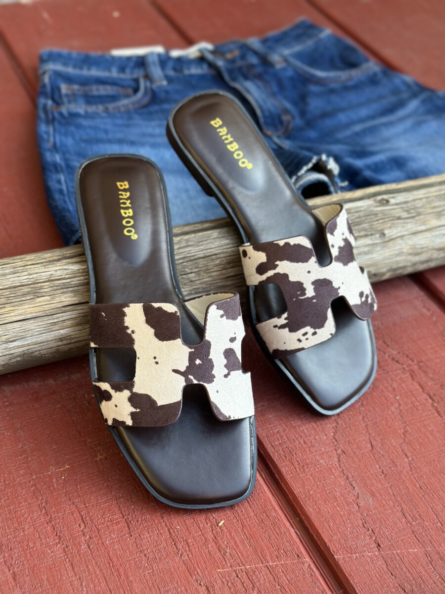 ” CONCEPT -27X ” Faux Cow Hide Sandals ( Brown )