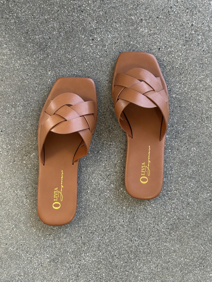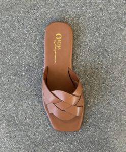 Women’s Woven Pointy Backless Flats Mules ( Brown )