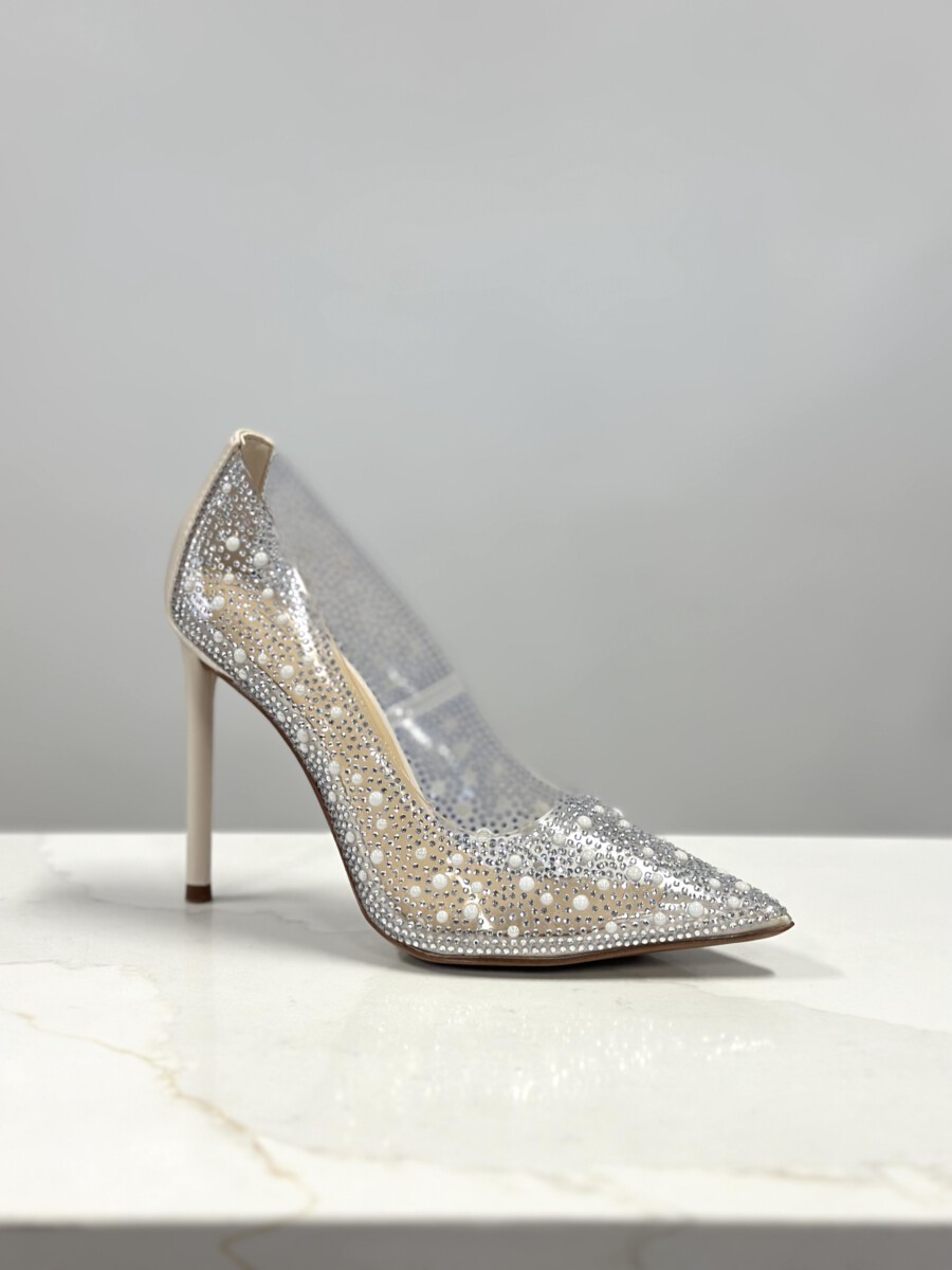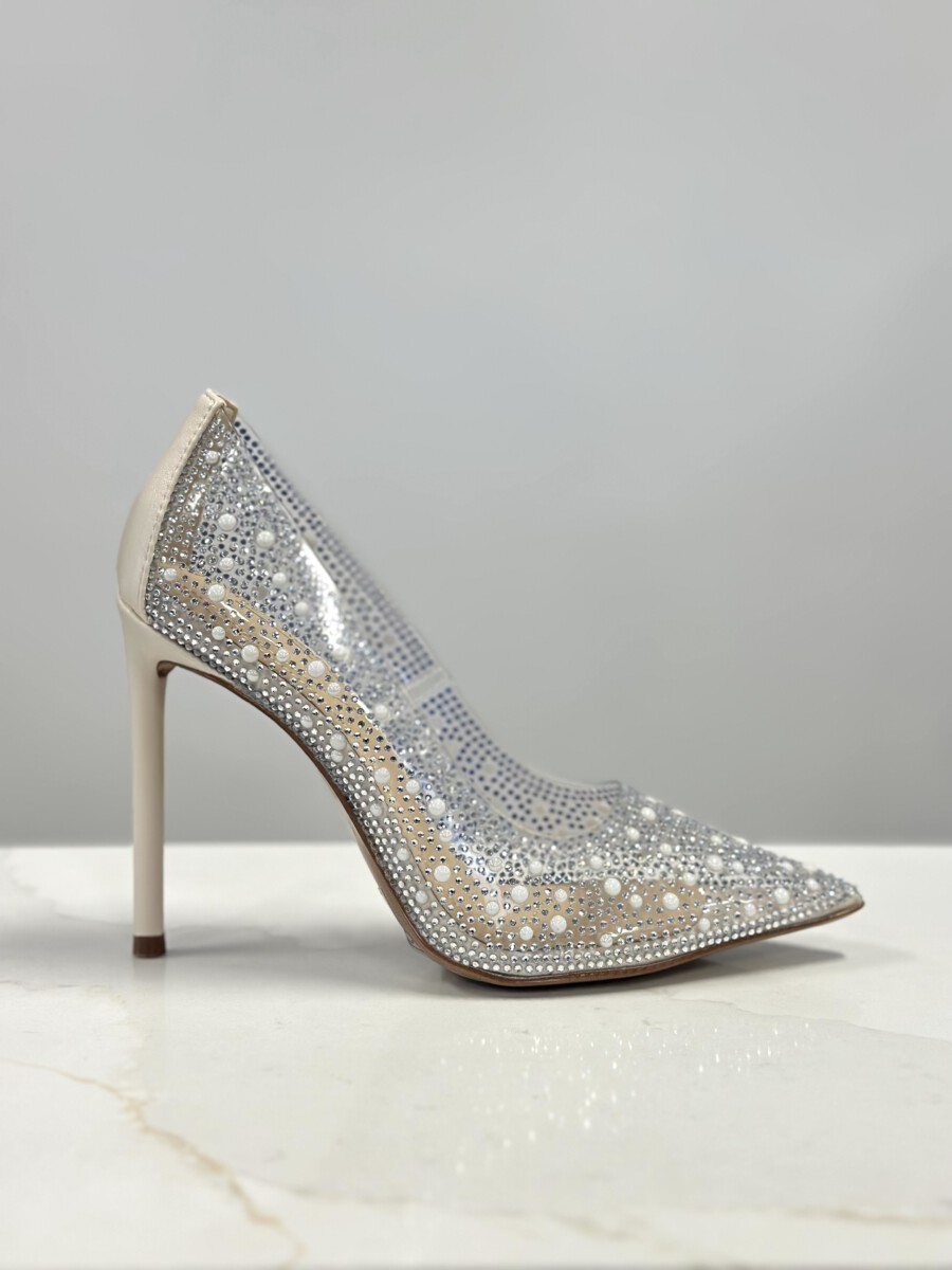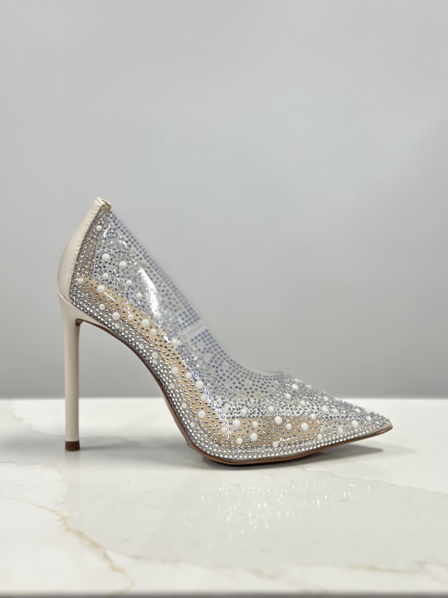 ” PROVISION-22 ” Pearl Pointy Heels ( Ivory / Multi )