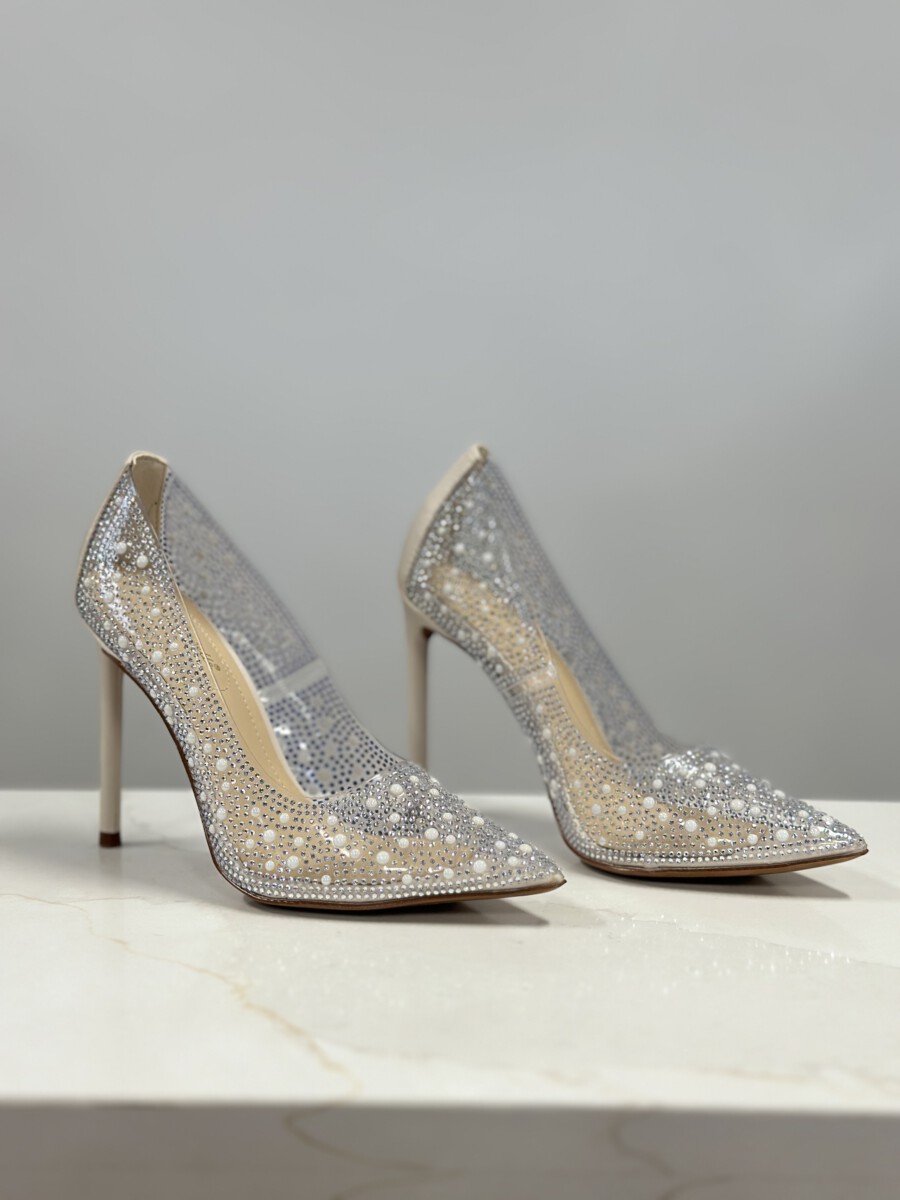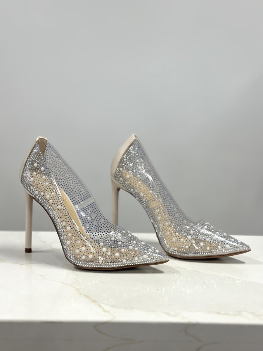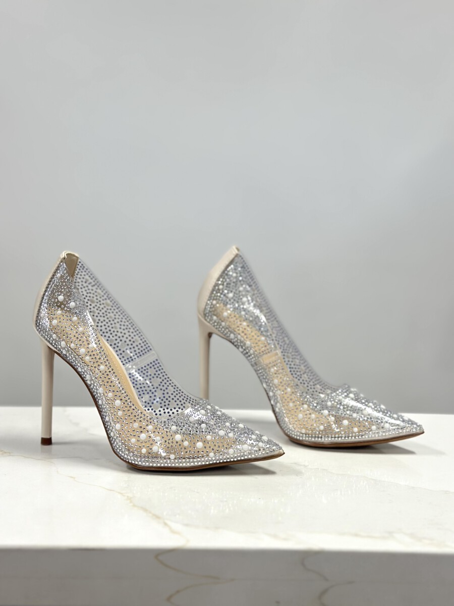” PROVISION-22 ” Pearl Pointy Heels ( Ivory / Multi )