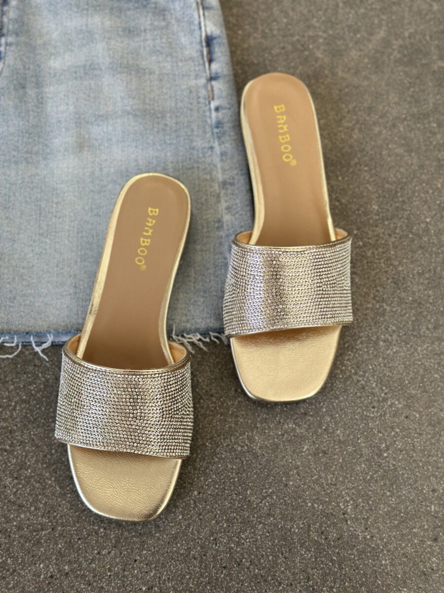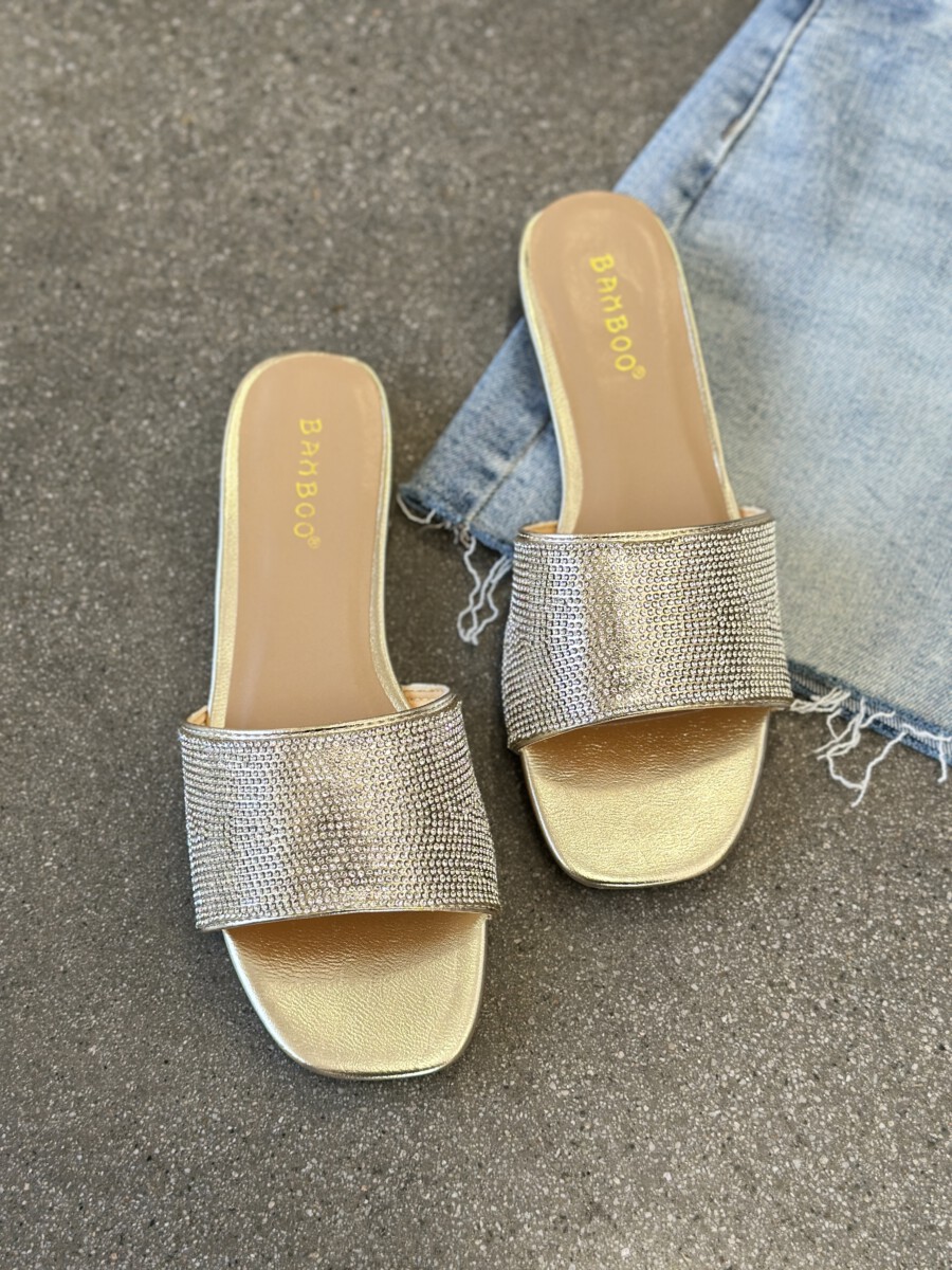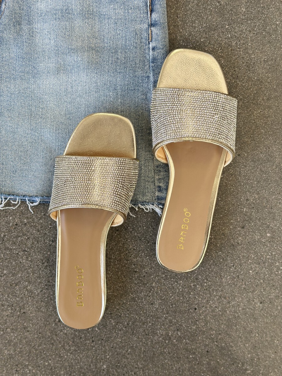 ” ROOTS-39 ” Embellished Slip On Sandals ( Gold )