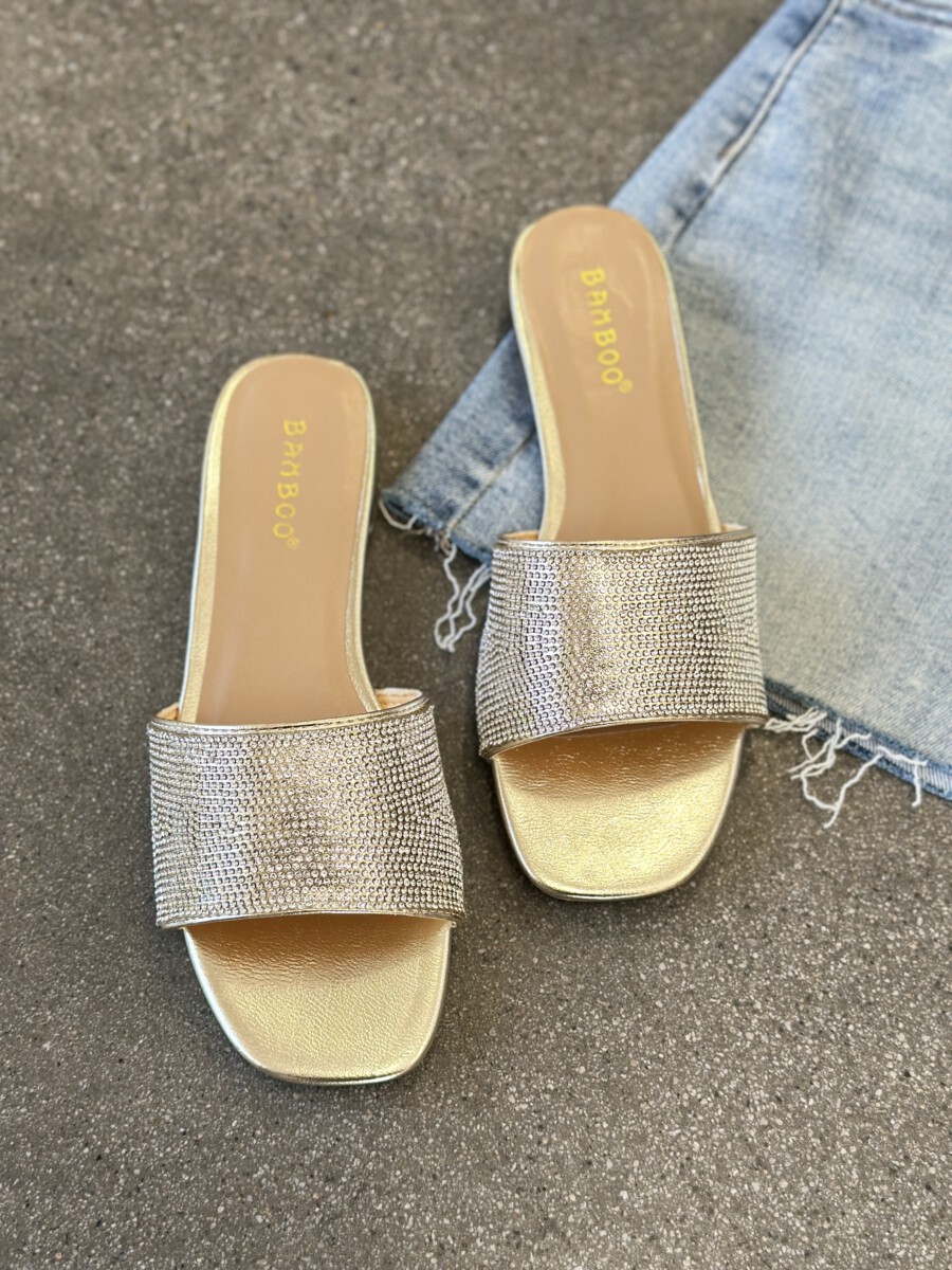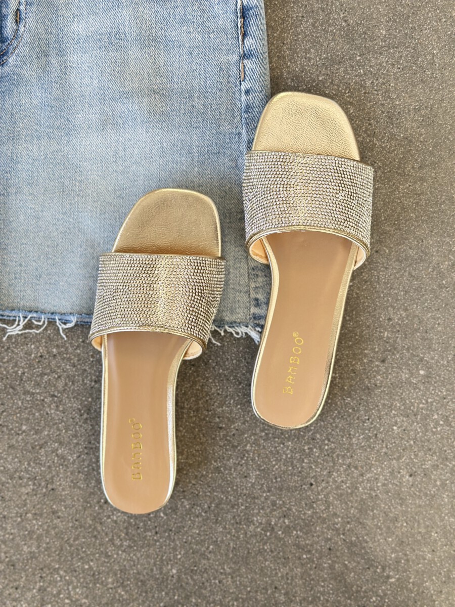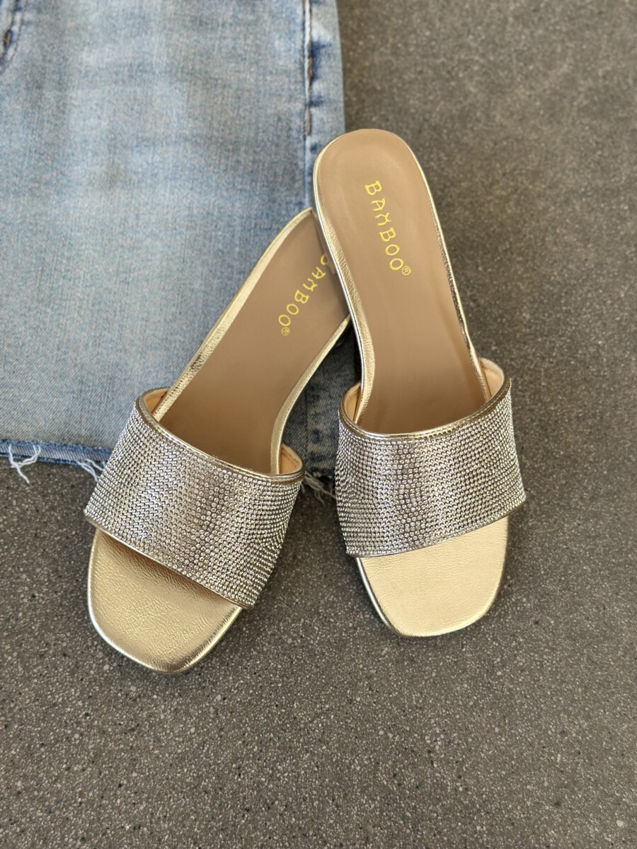 ” ROOTS-39 ” Embellished Slip On Sandals ( Gold )
