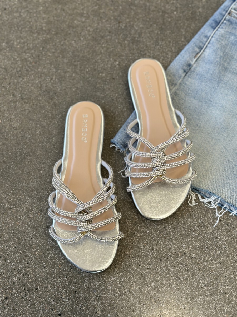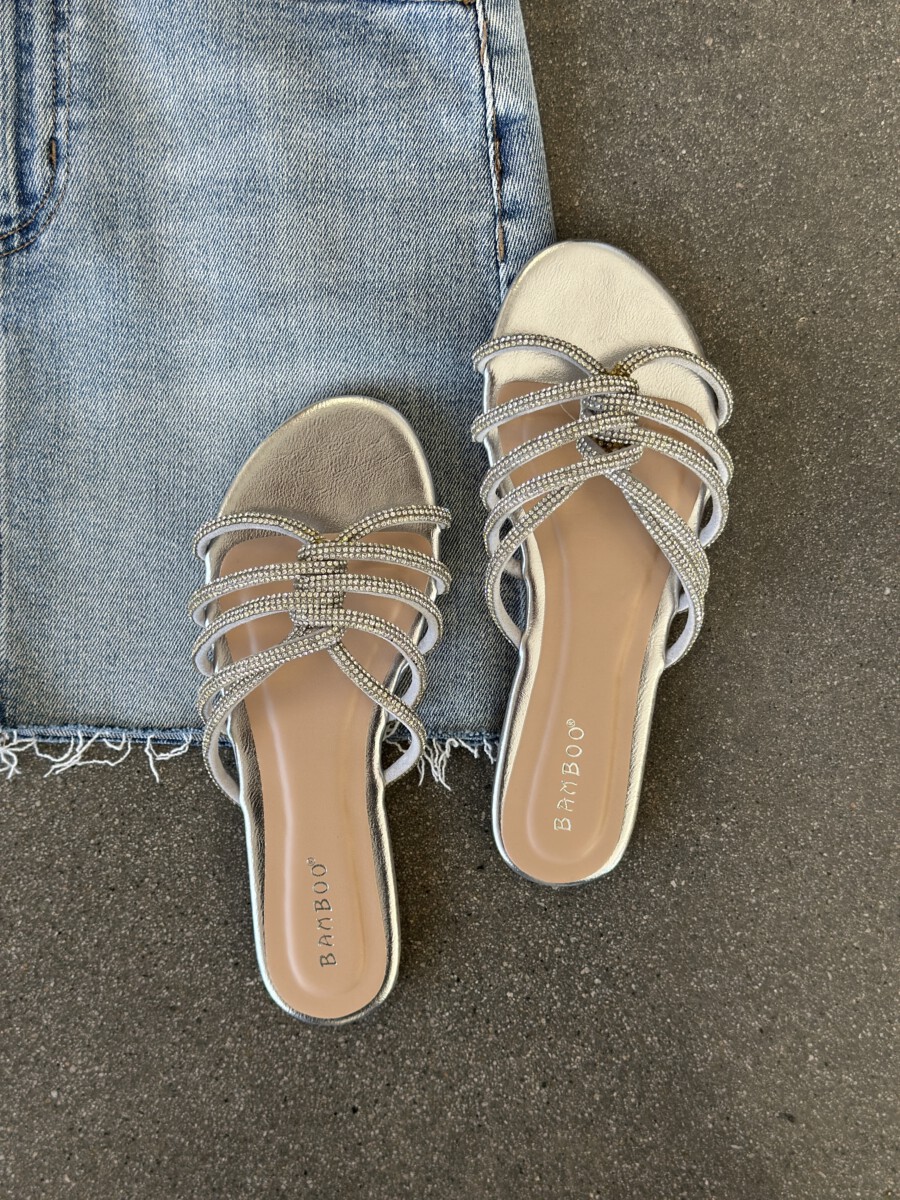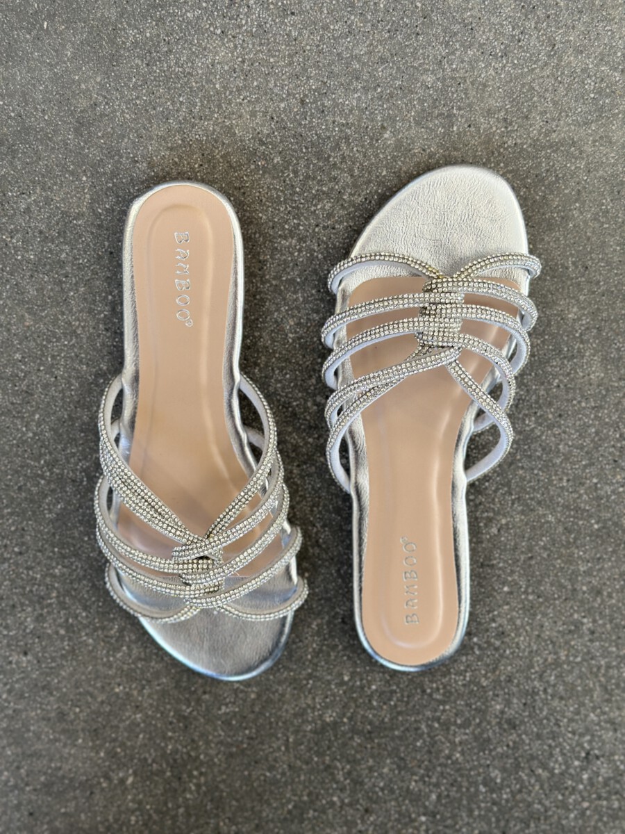 ” Spectacular-95 ” Embellished Slip On Sandals ( Silver )