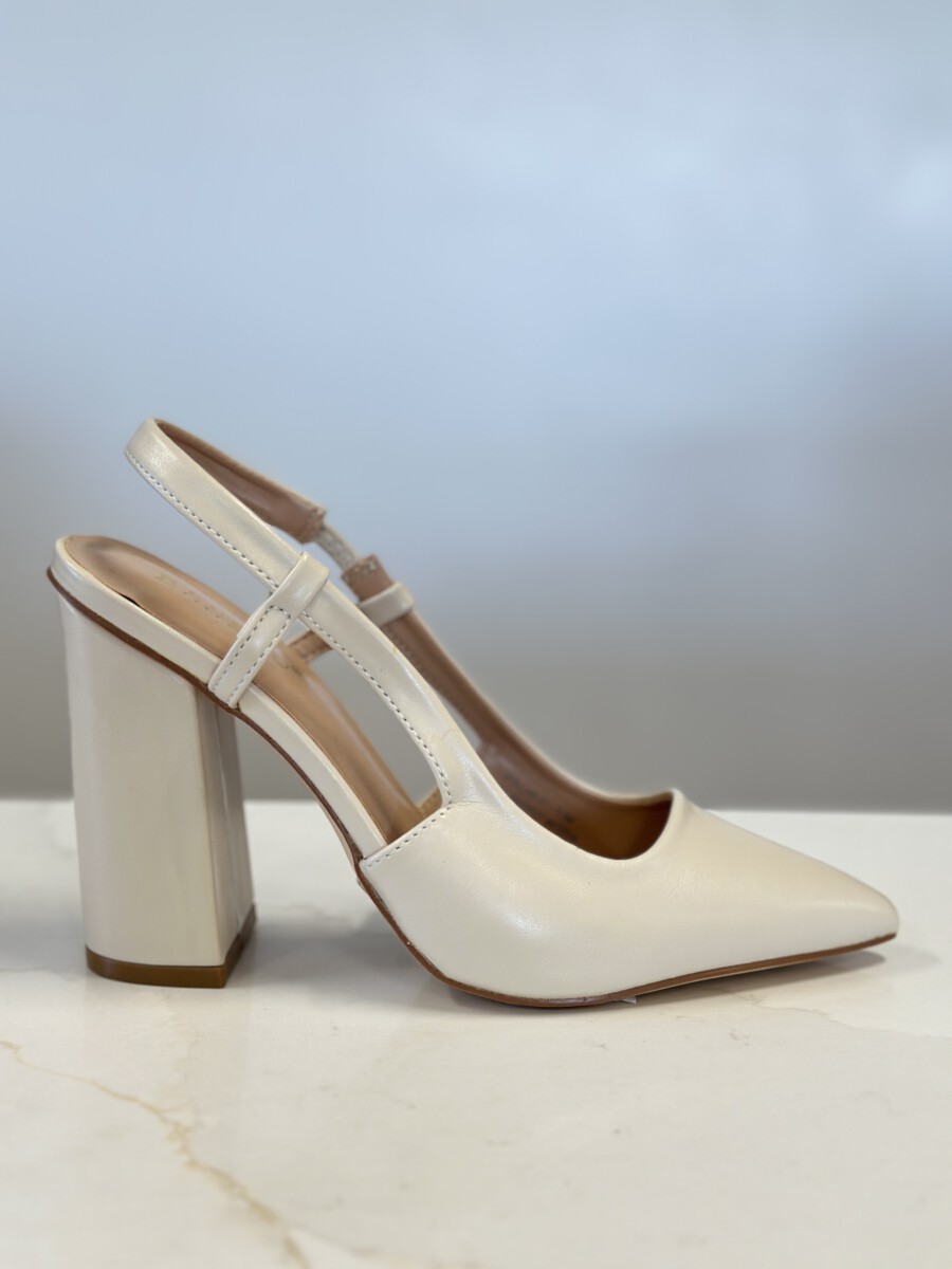 ” STELLAR-07 ” Pointy Chunky Heels ( Ivory )