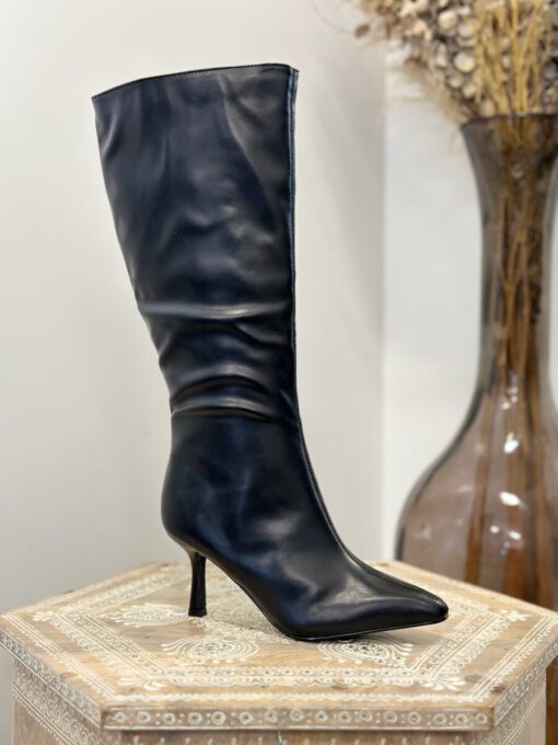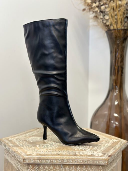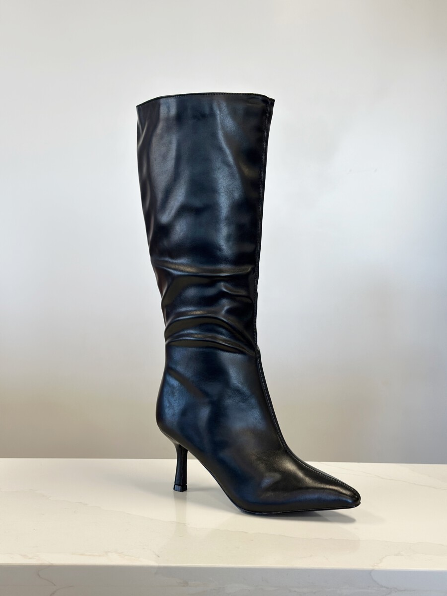 ” VALERIA ” Pointed Toe Mid High Boots ( Black PU )